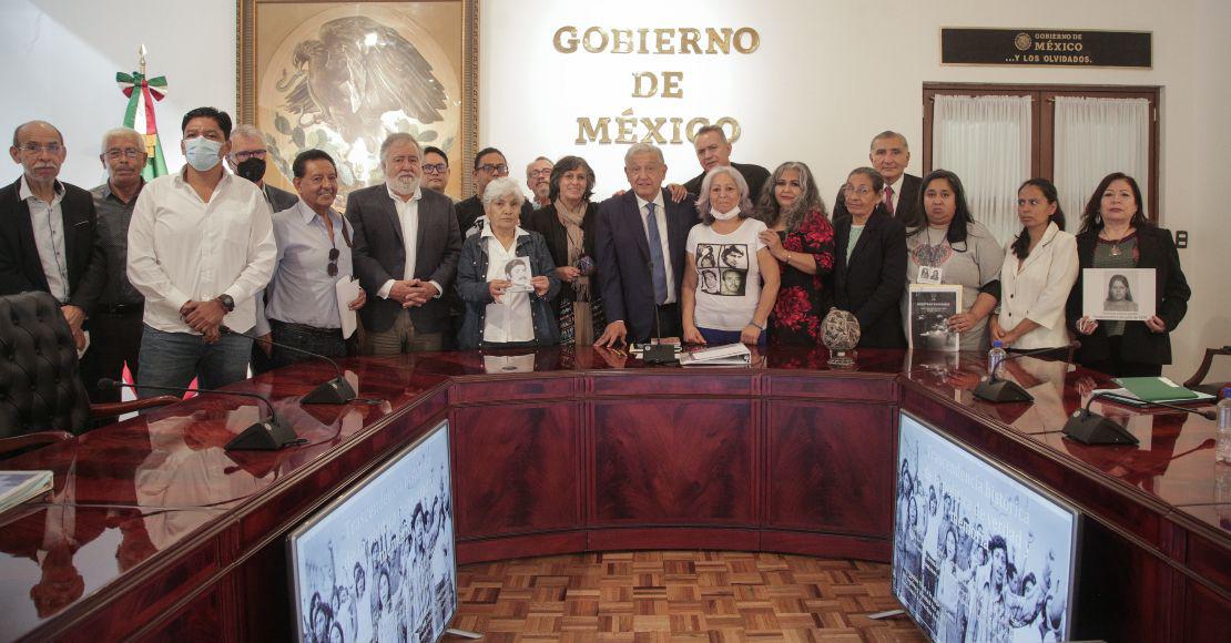 “Hoy que se conmemora el Día Internacional de las Víctimas de Desapariciones Forzadas nos reunimos con familiares y sobrevivientes de la guerra sucia. Llegamos al acuerdo de crear una comisión presidencial de verdad, justicia, reparación, memoria y no repetición”, expuso el Primer Mandatario en sus redes sociales.