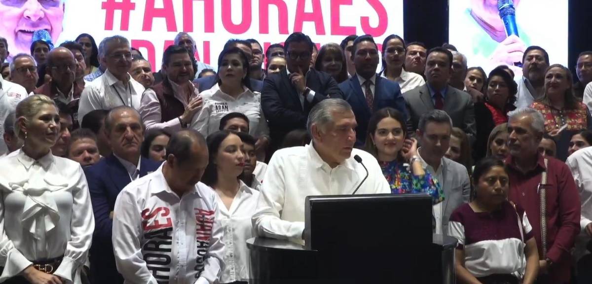 Durante distintos momentos de su mensaje, el ex funcionario federal recibió ovaciones de “¡presidente! ¡presidente!”, como cuando concluyó su discurso con la frase: “me comprometo a dar mi apoyo inequívoco a quien resulte ganador. Con el pueblo todo, sin el pueblo, nada”.
