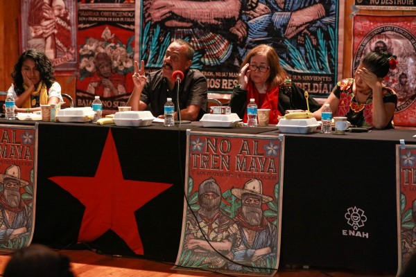 La abogada Magda Gómez detalló que cuando el Presidente López Obrador presentó el inicio del proyecto del tren "vimos la violación a un elemento sagrado de los pueblos con el ritual que se hizo para el inicio del Tren Maya. El líder que dirigió dicho ritual fue destituido por su propia comunidad.