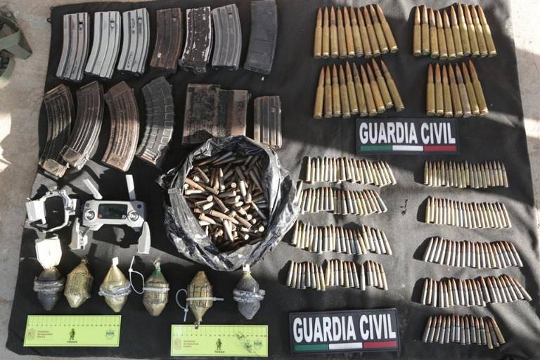 A los presuntos criminales se les decomisaron tres armas de fuego largas de alto poder, 14 cargadores, 260 cartuchos útiles de diversas armas y equipo táctico. Fueron puestos a disposición de las autoridades.