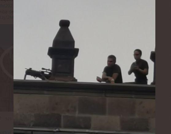 Este 8 de marzo, fotógrafos de diversos medios y agencias situados en la Plaza de la Constitución, del Zócalo de la Ciudad de la México -en el marco del Día Internacional de la Mujer, al que fueron convocados grupos feministas para marchar en la denominada #8M-, tomaron imágenes de hombres colocados en el techo del recinto presidencial, con lo que al parecer serían rifles de alto calibre y alcance.