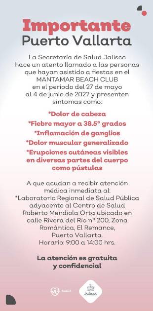 Según dijo la institución estatal jalisciense en un comunicado, después de esto se activaron las alertas para quienes acudieron a un festejo al Mantamar Beach Club, entre el 27 de mayo y el 4 de junio.
