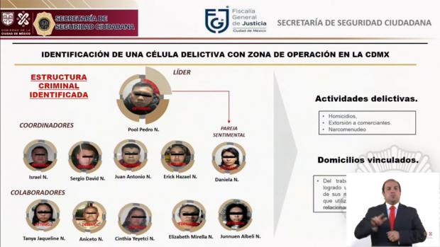 “Se pudo establecer que son parte de una célula criminal liderada por un sujeto identificado como Pedro ‘N’ Pool, quien tiene como zona de operación la Ciudad de México y el Estado de México. Esta célula criminal está relacionada con diversas actividades delictivas como homicidio, extorsión a comerciantes y narcomenudeo, principalmente en las alcaldías Iztacalco y Venustiano Carranza”, indicó.