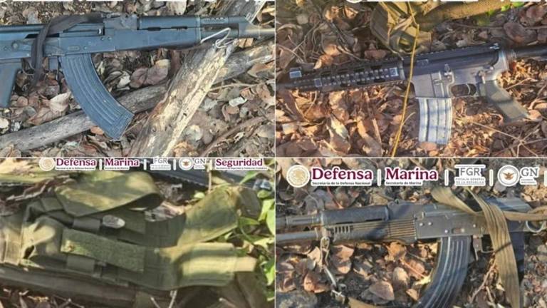 En el sitio fueron detenidos Ranfer A. de 23 años, Alexis Adrián R. de 19, Aarón F. de 21, José Alberto C. de 28, Adonis Jesús U. de 27 y Salvador O. de 21, además se aseguraron cinco armas largas, tres cortas, siete chalecos con siglas de un grupo delictivo, aros aprehensores, tablas, un machete y droga.
