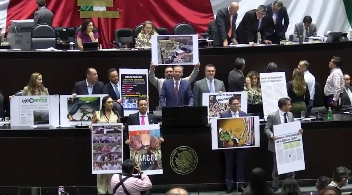 “Explíquenle a la ciudadanía por qué mandaron 10 mil guardias nacionales a nuestra frontera norte descuidando sus colonias. Explíquenles también cómo no es un sometimiento que estén deteniendo a personas migrantes en territorio nacional, todo para hacerle el trabajo sucio a Donald Trump, sin importarle los derechos”, dijo el diputado panista, para luego mostrar la imagen del “narcorrancho” localizado en Teuchitlán, Jalisco.