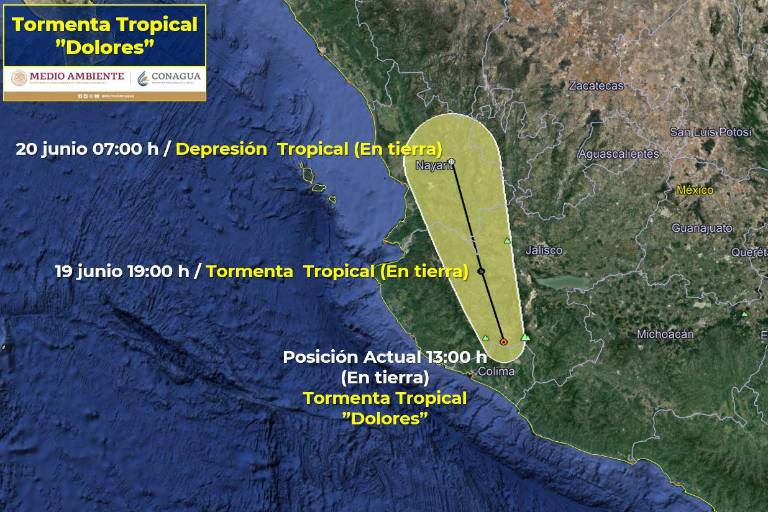 Se prevé que “Dolores” se mantenga como tormenta tropical todavía este sábado por la tarde, en territorio de Jalisco. Pero ya este domingo, sobre Nayarit, bajaría a depresión tropical.