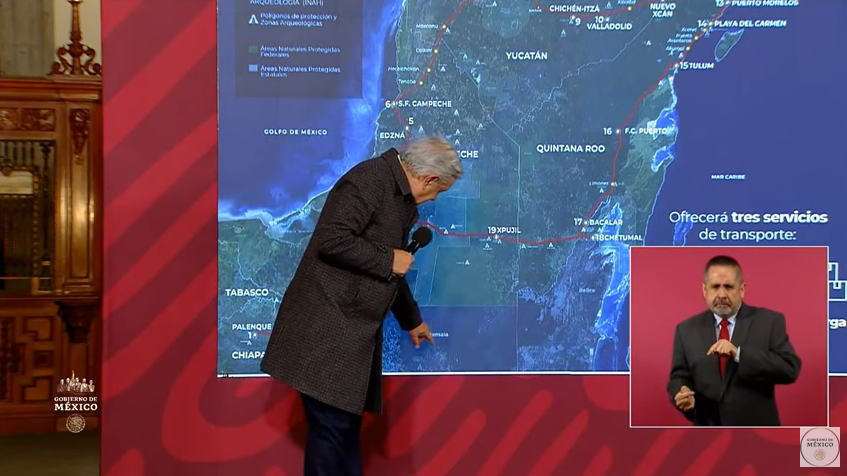 “Se están haciendo muchas obras, muchas, muchas, muchas, se están haciendo paraderos, hoteles, parques naturales, el Parque del Jaguar, estamos por hacer otro parque, que queremos llamar el Parque del Mangle, nos están ofreciendo un hotelero, mejor dicho un hotelero que falleció, con la gente muy buena, que yo conocí y que este... era una gente progresista, Julio Berdegué, El Cid, de los Hoteles El Cid”, informó Andrés Manuel López Obrador.