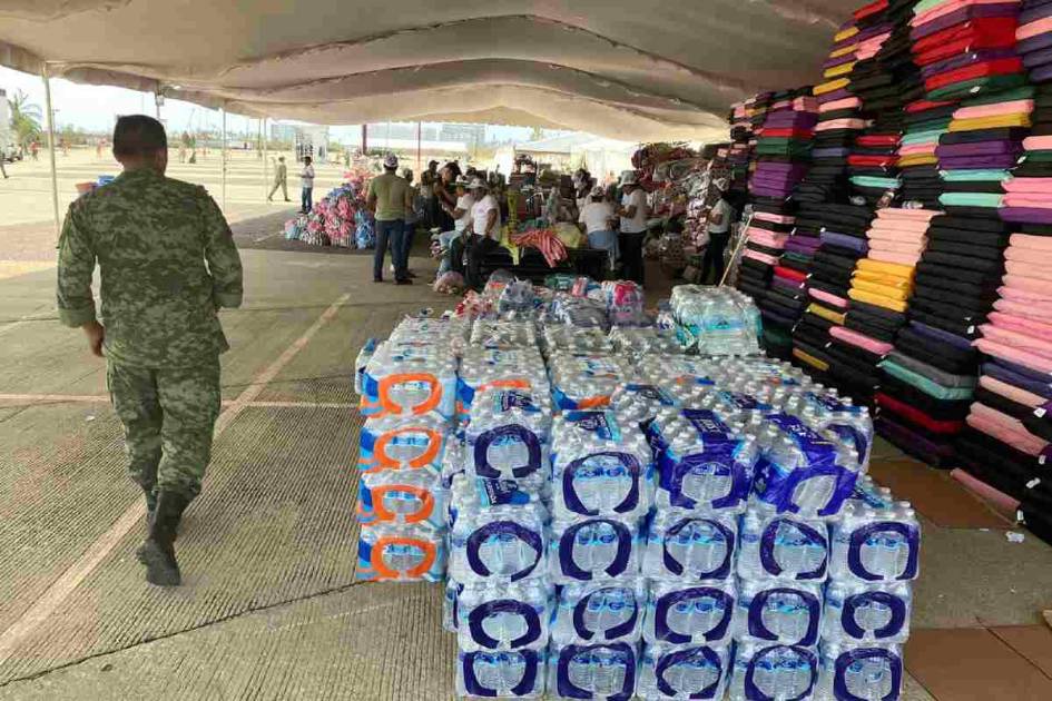 Son las 4.30 de la tarde y hace tan solo un par de horas antes, la Secretaria de Gobernación, Luisa María Alcalde, aseguró rotundamente desde el centro de acopio instalado por el Ejército, a un par de kilómetros del aeropuerto, que la situación tras el paso del huracán Otis estaba bajo control y que ya los víveres estaban siendo distribuidos de manera masiva.