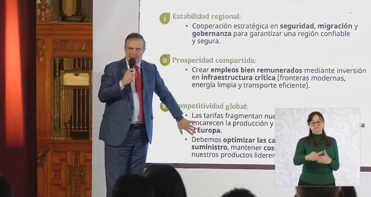 “En la mesa se encuentra elegir entre fragmentarnos con tarifas, debilitando nuestras economías, o construir juntos una región fuerte, competitiva y preparada para liderar el futuro”, sostuvo Ebrard quien aseguró que la propuesta de México es convertir a América del Norte en el bloque más seguro, productivo y competitivo del mundo.