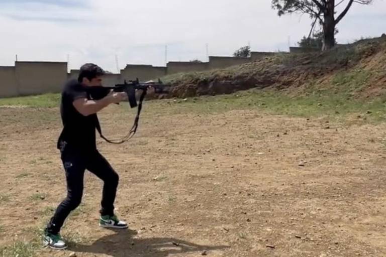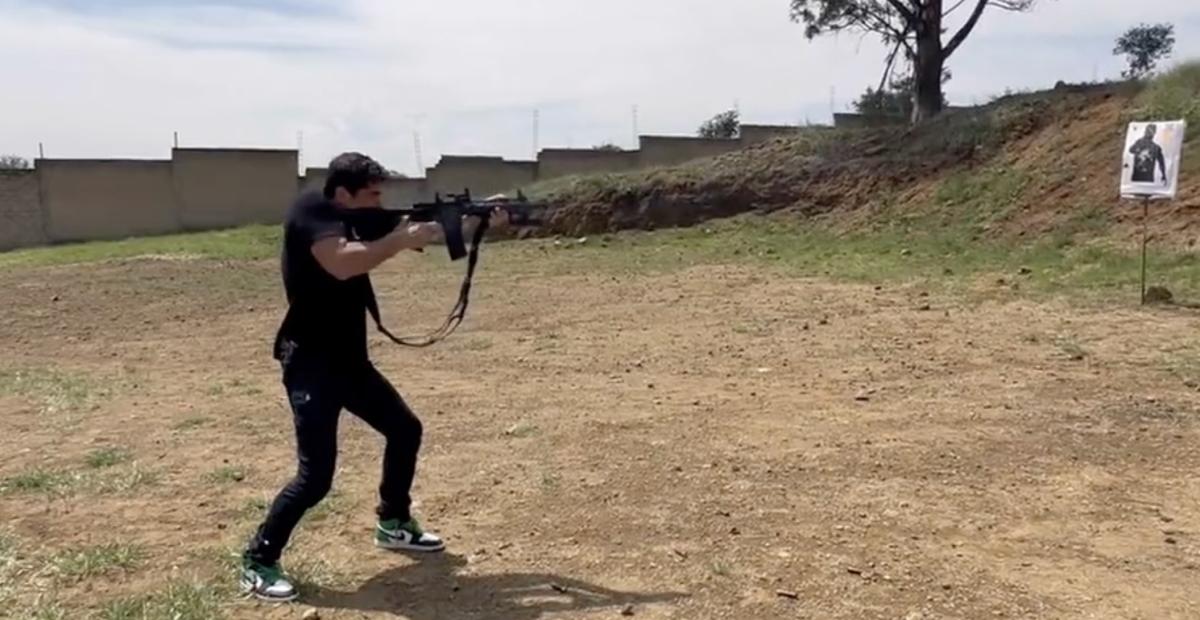 En la publicación adjuntó un video donde se le observa en lo que pareciera una campo de práctica de tiro, disparando un rifle de asalto.