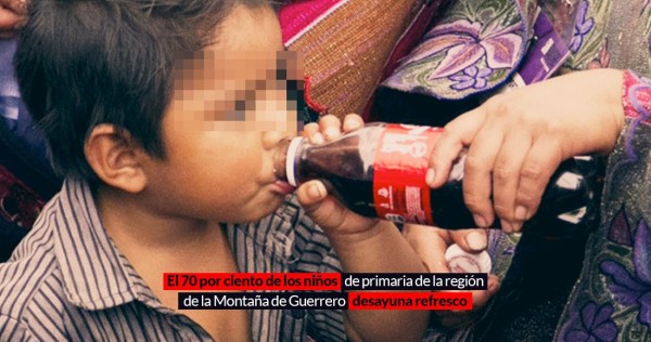 El 70 por ciento de los niños de primaria de la región de la Montaña de Guerrero desayuna refresco frente al 51 por ciento que recurre al café (no necesariamente de grano, sino soluble), el 26.6 por ciento a leche o el 17 por ciento al atole como el primer alimento del día, revela un estudio de El Poder del Consumidor y Oxfam México (2010) basado en más de 300 encuestas a menores y jóvenes del municipio de Chilapa y aledaños.