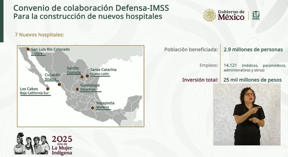 Según explicó Zoé Robledo, los hospitales se construirían en Santa Catarina, Nuevo León; en San Luis Río Colorado, Sonora; Yecapixtla, Morelos; Saltillo, Coahuila; Los Cabos, Baja California Sur; Culiacán, Sinaloa, y Guadalupe, Zacatecas.
