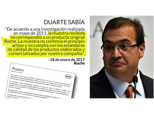 Ciudad de México, 18 de enero (SinEmbargo).–La farmacéutica Roche confirmó hoy que Javier Duarte de Ochoa supo que el medicamento aplicado a niños con cáncer era falso y que además, ni siquiera era para niños, de acuerdo con un comunicado. Dijo que es complemento para el tratamiento, y no es quimioterapia, como dijo el Gobierno de Miguel Ángel Yunes.