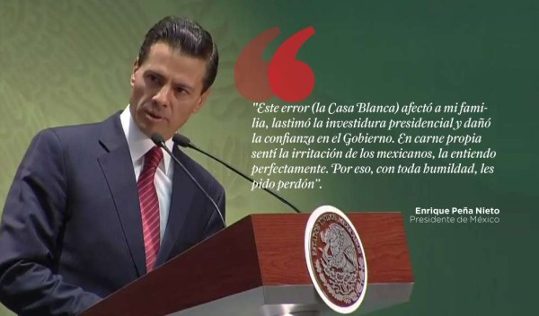 “No obstante que me conduje conforme a la ley, este error afectó a mi familia, lastimó la investidura presidencial y y dañó la confianza en el gobierno. En carne propia sentí la irritación de los mexicanos, la entiendo perfectamente. Por eso, con toda humildad, les pido perdón”.