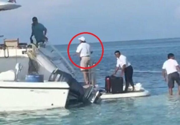 El video grabado por los pescadores muestra a dos hombres de blanco, uno con pantalón largo y camisa de lino, así como otro en bermudas, que caminan hacia un yate para abordarlo. Los sujetos fueron escoltados por personas que les cargan las maletas mientras el piloto maniobra y despega.