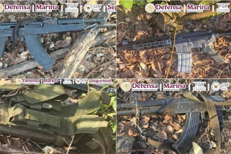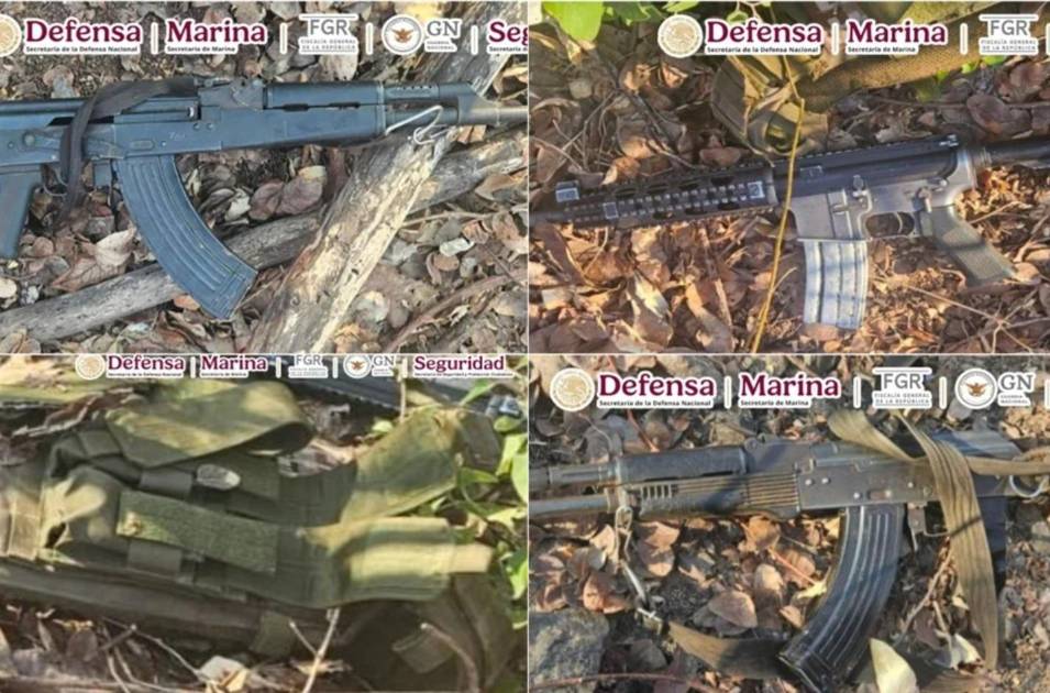 En ese sitio, dos unidades oficiales fueron dañadas por impactos de arma de fuego y se aseguraron cuatro fusiles de fabricación estadounidense, cargadores, cartuchos y un vehículo.