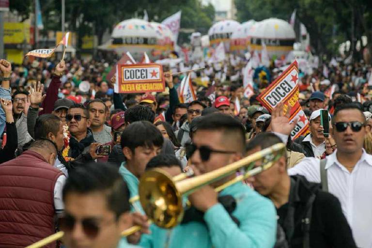 Los contingentes ingresaron al primer cuadro de la ciudad por avenida Juárez, luego por Madero, que en esta ocasión no fue cerrada; y por 5 de Mayo, hasta llegar al Zócalo.