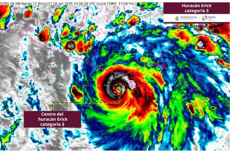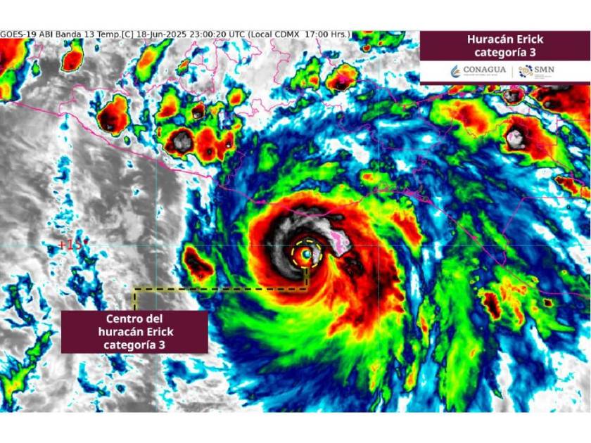El huracán Erick ha tomado más fuerza conforme mantiene su trayectoria hacia territorio mexicano y ya es un huracán de categoría 3.
