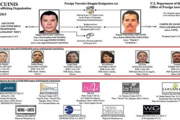 El Gobierno de los Estados Unidos incluyó en su Lista de Personas Bloqueadas y Especialmente Designadas por el Departamento del Tesoro (Ley Kingpin), realizada por la Oficina de Control de Activos en el Extranjero (OFAC, por sus siglas en inglés), a dos empresas mexicanas relacionadas con Abigael González Valencia, líder de "Los Cuinis".