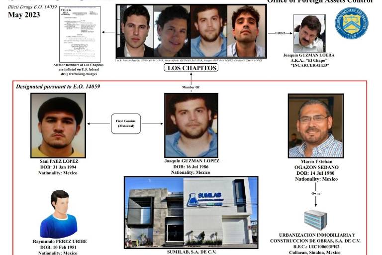 “Además, Sumilab, SA de CV (Sumilab), que es una empresa de equipos químicos y de laboratorio con sede en Culiacán, Sinaloa, fue designada hoy por su participación en el suministro y envío de precursores químicos para miembros y asociados del Cártel de Sinaloa. La OFAC designó a las cuatro personas, así como a Sumilab, de conformidad con EO 14059 por haber participado o intentado participar en actividades o transacciones que han contribuido materialmente o representan un riesgo significativo de contribuir materialmente a la proliferación internacional de tráfico ilícito. drogas o sus medios de producción”, abundó el Departamento del Tesoro de Estados Unidos.