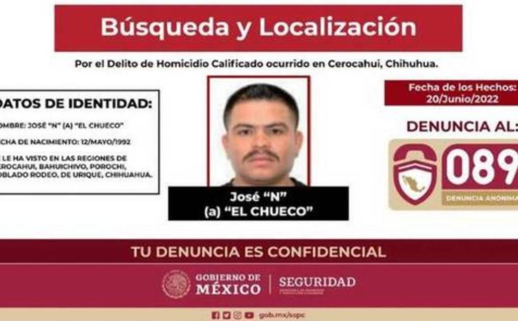 A “El Chueco” se le imputa de asesinar a los sacerdotes jesuitas, Javier Campos Morales y Joaquín César Mora Salazar, de 79 y 80 años de edad, respectivamente, y del guía de turistas Pedro Palma Gutiérrez, asesinados el 20 de junio de 2022, al interior de la parroquia de San Francisco Javier, ubicada en la comunidad de Cerocahui, en Chihuahua.