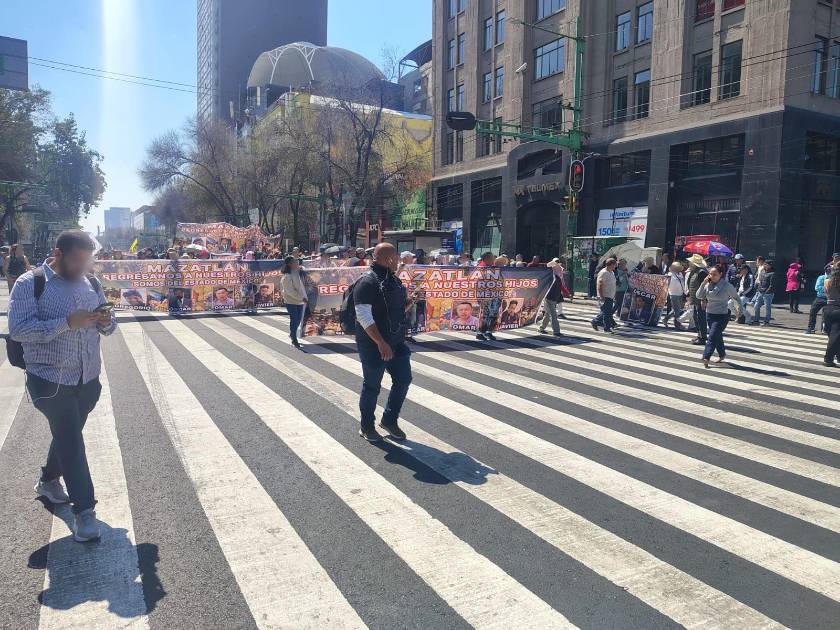 Familiares de cuatro hombres originarios del Estado de México, reportados como desaparecidos desde el 3 de febrero de 2026 en el puerto de Mazatlán, Sinaloa, realizaron diversas protestas en el Centro Histórico de la Ciudad de México para exigir a autoridades federales su localización y avances en las investigaciones.
