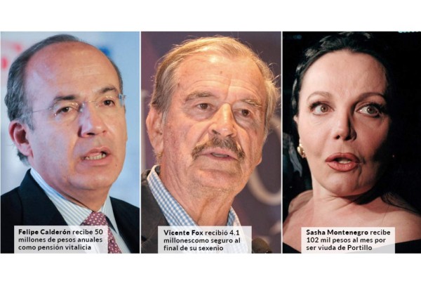 Esta pensión también incluye a las viudas de los ex mandatarios, como es el caso de la ex actriz Sasha Montenegro, viuda de José López Portillo, quien recibe 115 mil 187 pesos mensuales del erario.