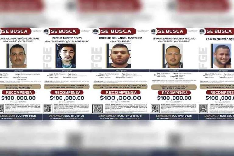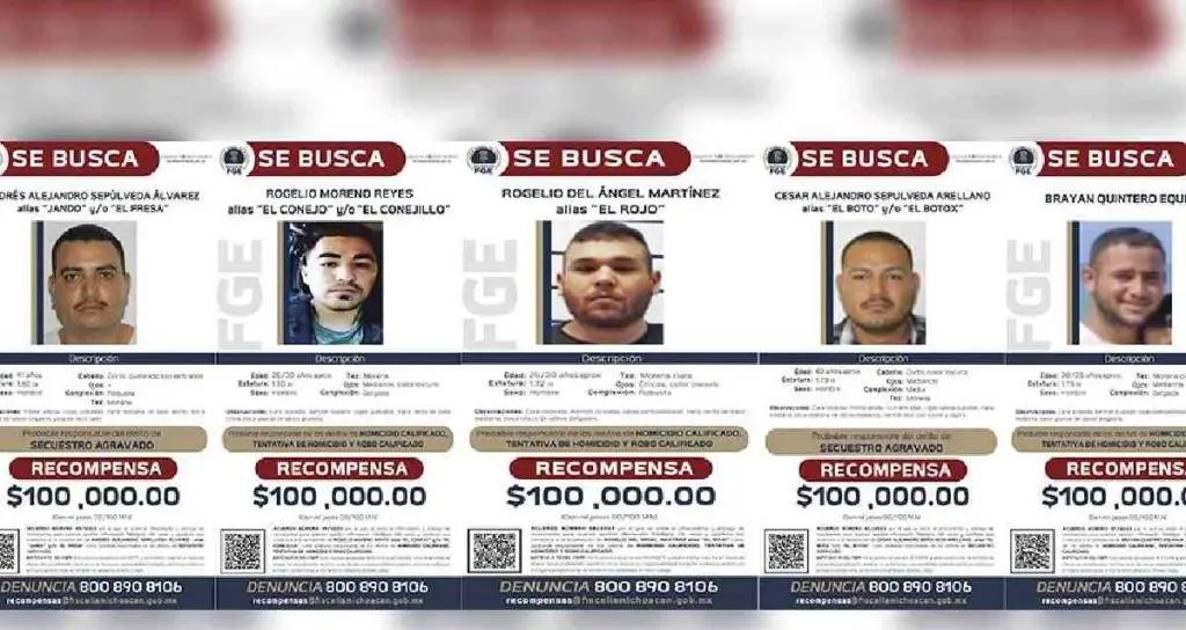 De acuerdo con las fichas, la recompensa ofrecida es de 100 mil pesos por cada una de las personas prófugas de la justicia por presuntamente cometer los delitos de secuestro agravado, homicidio calificado, homicidio calificado en grado de tentativa y robo calificado.