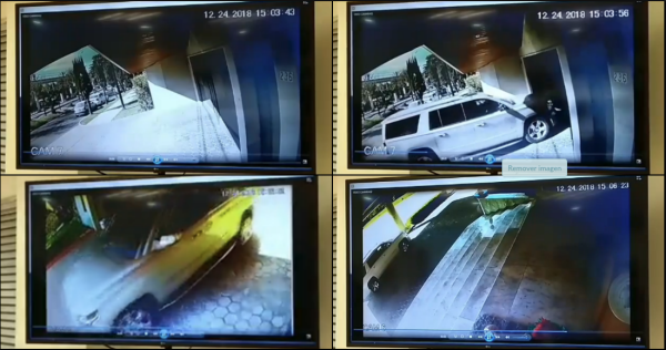 En las imágenes, se puede observar el momento en el que se abren las puertas del inmueble para que ingrese la camioneta en la que viajaban los políticos, hecho que ocurre alrededor de las 15:03 horas del pasado 24 de diciembre de 2018, según indica el mismo video en la parte superior derecha.