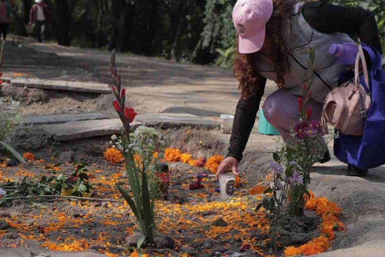 Fosa común del Panteón de Dolores se llena de velas y flores para los fallecidos sin nombre