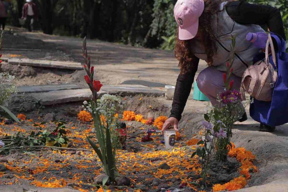 Por segundo año, autoridades de la Comisión Nacional de Búsqueda, la alcaldía Miguel Hidalgo y la asociación civil El Caracol organizaron una misa y coordinaron el montaje de la ofrenda para quienes fallecieron en calidad de desconocidos y terminaron en la fosa común de la Ciudad de México, ubicada en el Panteón Civil de Dolores.
