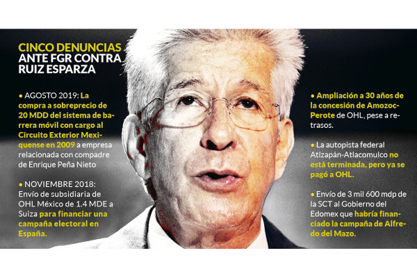 En esta denuncia reciente ante la FGR también se le señala a Ruiz Esparza la concesión del Viaducto Bicentenario adjudicada en 2008 a OHL México pese a haber una oferta económica de otro participante más alta. Esa decisión generó al 31 de diciembre del 2018 un quebranto para la hacienda pública del Estado de México de mil 629 millones de pesos.