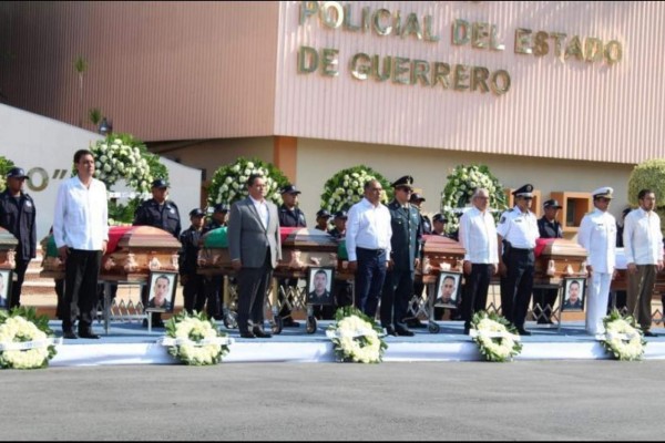 Ante familiares de los policías asesinados, en la explanada de la Universidad Policial ubicada en Chilpancingo, el mandatario estatal hizo un reconocimiento a quienes, dijo, merecen un doble reconocimiento, "porque defienden a la sociedad y porque mueren por servir a la sociedad", además de que son los únicos que combaten el crimen organizado, ya que, afirmó, los agentes municipales no lo hacen.