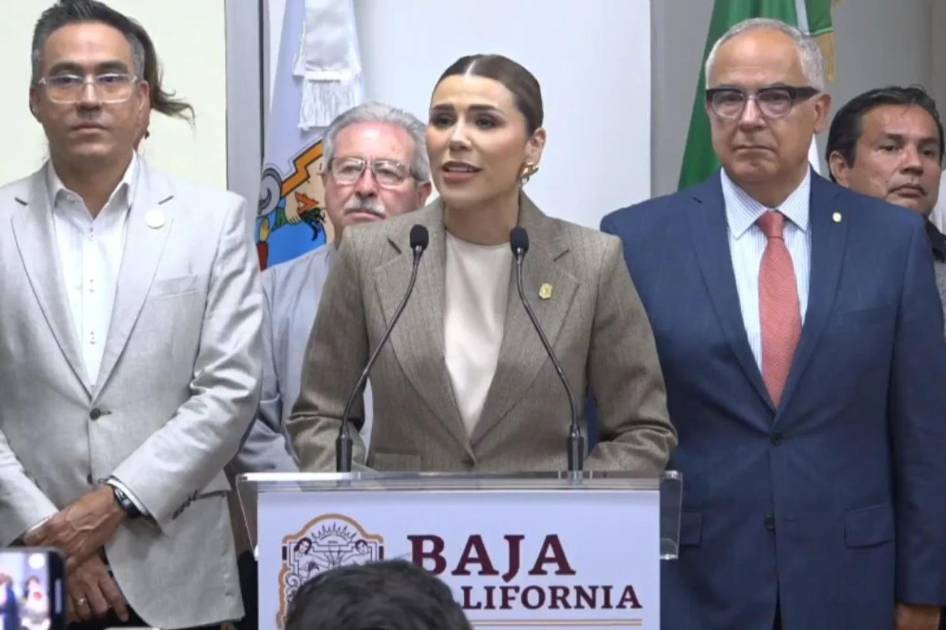 Flanqueada por su gabinete -a su izquierda por el titular de la Secretaría General de Gobierno, Alfredo Álvarez Cárdenas, y a la derecha por el de la Secretaría de Educación del Estado, Luis Gilberto Gallego Cortez, la mandataria bajacaliforniana subrayó que sus opositores convirtieron la medida en un arma política. Sin embargo, añadió que respetaba “profundamente” la soberanía del Gobierno de Estados Unidos.