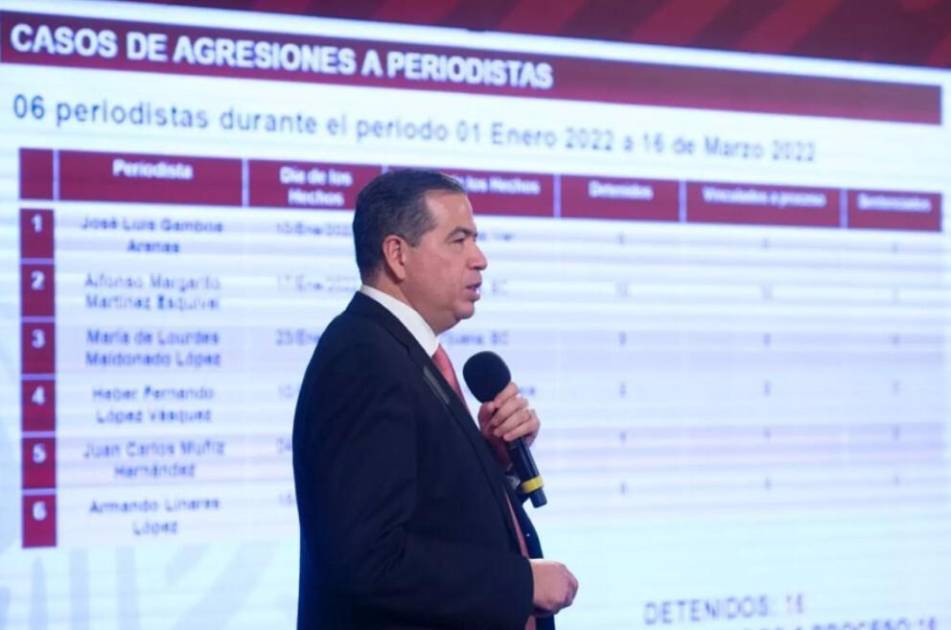 Ricardo Mejía Berdeja, titular de la Subsecretaría de Seguridad Pública de la Secretaría de Seguridad y Protección Ciudadana del Gobierno federal que seis periodistas han sido asesinados en lo que va de 2022 en México y que hay 16 detenidos vinculados a dichos homicidios.