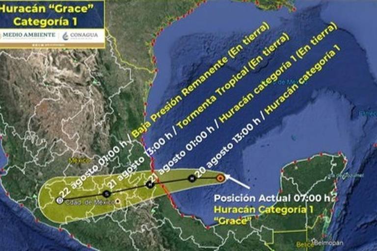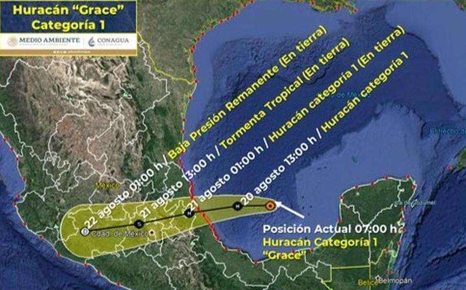 MÉXICO._ El Servicio Meteorológico Nacional (SMN) indicó que se prevé que el fenómeno meteorológico “Grace” se intensifique a huracán categoría 2 en la escala Saffir-Simpson, en el curso de la tarde de este viernes, antes de que su centro impacte en la costa de Veracruz la madrugada de mañana sábado.