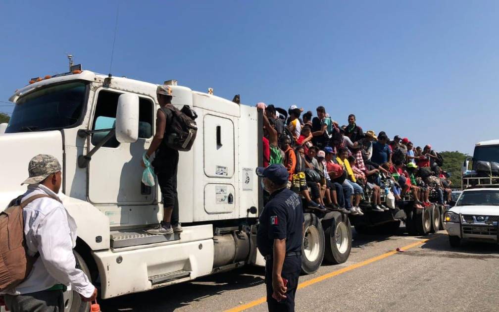 Elementos de la Guardia Nacional impiden que camiones y otros vehículos transporten a migrantes que forman parte de la caravana. Videos hechos públicos por Irineo Mujica, de Pueblo Unido Migrante, muestran cómo los uniformados bloquean la carretera y los migrantes se ven obligados a bajar de los vehículos y seguir caminando. Actualmente el grupo se encuentra en la carretera que conduce a Juchitán, Oaxaca, y lleva más de 20 días de caminata, después de iniciar su trayecto el pasado 23 de octubre.