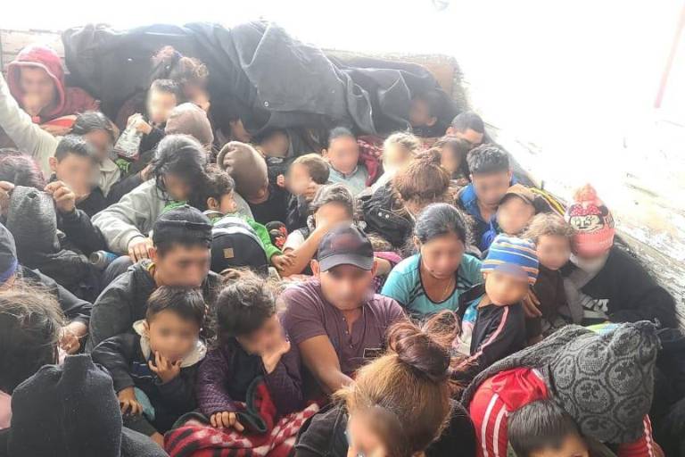 “En un camión de redilas se escuchaban ruidos y algunas voces, y al abrir una de las puertas hallaron a las personas adultas y menores de edad amontonados y cubiertos con una malla de plástico, quienes no contaban con la documentación que amparara su legal estancia en el país”, explicó el INM en un comunicado.