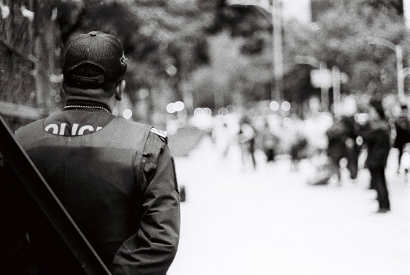 El cartel citaba la reunión en la Embajada, a las 18:00 hrs del día martes y ante la leyenda “manifestación solidaria”. Al llegar, había una especie de vallas de defensa, parecidas a un muro. Su función era separar la masa de manifestantes que se habían colocado al otro lado de la calle, y dejaban a la pomposa bandera estadounidense agitarse con el viento de la lluvia que se avecinaba.