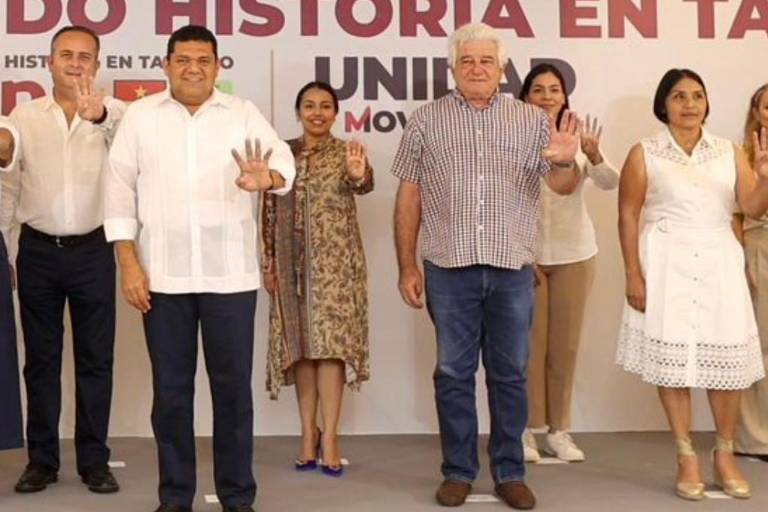 “[Merino Campos] ni ata ni desata; sólo sigue la instrucción de Adán, porque sigue manejando el Gobierno de Tabasco”, expresó “Pepín” entre aplausos, quien también dijo que el próximo candidato de Morena a gobernador de la entidad debiera ser un fundador del partido, por lo que propuso a Javier May Rodríguez, director del Fondo Nacional de Fomento al Turismo (Fonatur) y responsable de la construcción del Tren Maya.