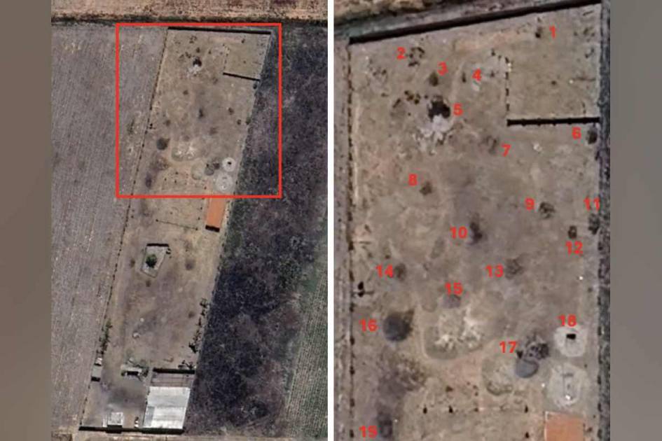 Mientras que una imagen captada en marzo de 2025 muestra la existencia de al menos tres cavidades que corresponden con el hallazgo de tres hornos crematorios clandestinos reportados el pasado 5 de marzo por el colectivo Guerreros Buscadores de Jalisco.