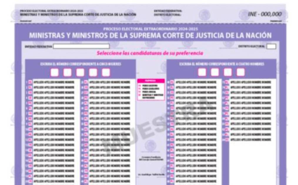 No obstante, se mantuvieran las iniciales del poder que propone a los candidatos -el Ejecutivo, Legislativo o Judicial-, así como los recuadros para que el ciudadano coloque en la parte de arriba el número. Las boletas para los jueces serán amarillas y para los magistrados color caoba.