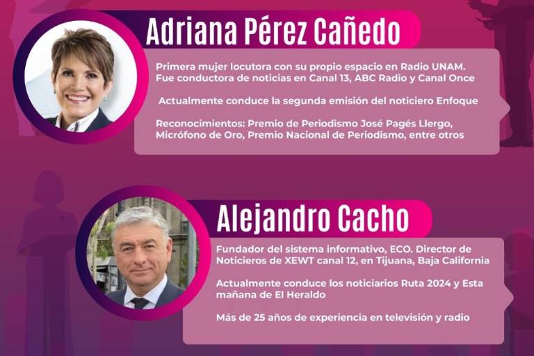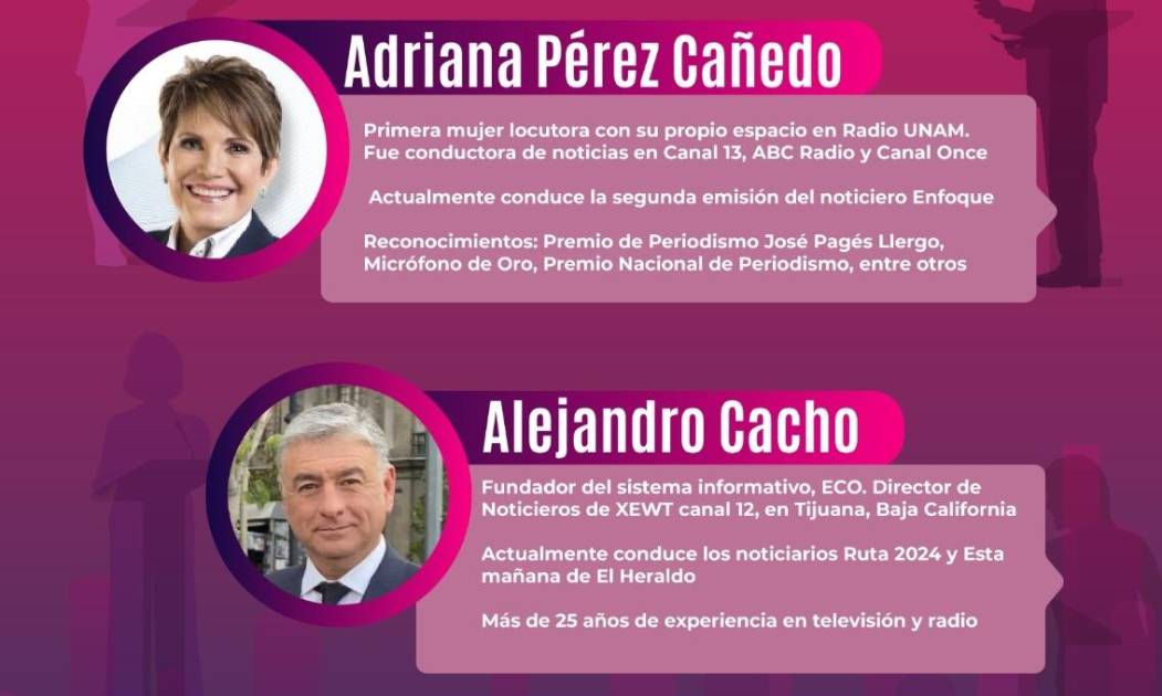 Por unanimidad, el Consejo General del Instituto Nacional Electoral (INE) aprobó el proyecto por el que se designaron a los periodistas Adriana Pérez Cañedo y Alejandro Cacho, como los moderadores del segundo debate presidencial, que se realizará a las 20:00 horas del 28 de abril del presente año, en los Estudios Churubusco.