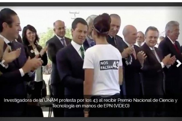 "Investigadora de la UNAM protesta por los 43 al recibir Premio Nacional de Ciencia y Tecnología en manos de EPN"