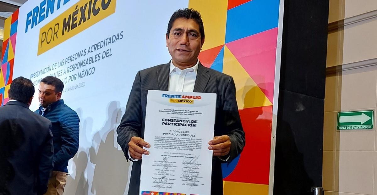 Preciado Rodríguez era uno de los 12 aspirantes para ser candidatos a la Presidencia de la República en 2024, del PRI, PAN y PRD, que junto a grupos de ciudadanos conforman el Frente Amplío por México.