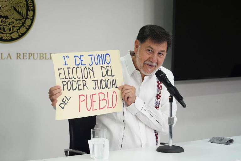 El legislador concluyó la conferencia de prensa exhibiendo una cartulina con la leyenda: “1 de junio. Elección del Poder Judicial del Pueblo”.