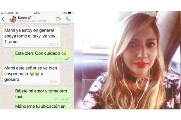 “Mami este señor se ve bien sospechoso y grosero”, le escribió Laura Karen Espíndola Fabián a su mamá la noche del 3 de diciembre de 2019, alrededor de las 21:00 horas, al abordar un taxi sobre avenida Tlalpan.