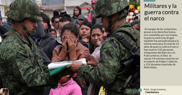 Al margen de las violaciones graves a los derechos humanos cometidas por sus tropas, la guerra contra las drogas también fue perjudicial para la milicia mexicana. En más de 12 años de guerra contra el narco han muerto 543 personas integrantes del Ejército y la Fuerza Aérea. A ellos habría que sumar 54 marinos muertos en el sexenio de Felipe Calderón, de acuerdo a una investigación de El Economista, y 152 durante el periodo de Enrique Peña Nieto, según el portal Defensa.