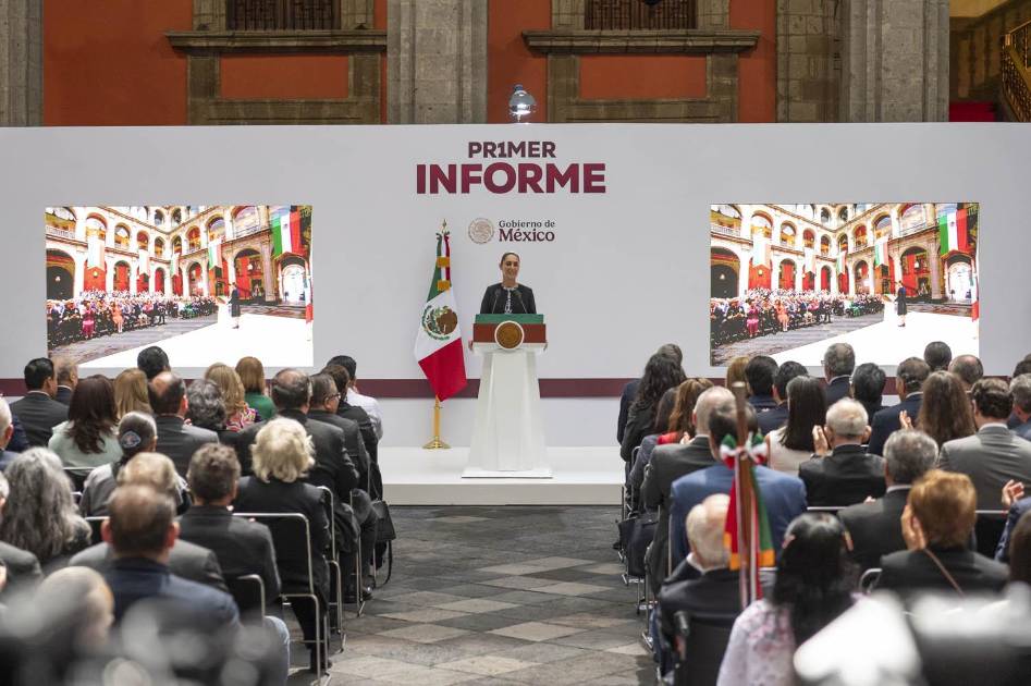 En su mensaje, Sheinbaum Pardo destacó la reducción en 25 por ciento del homicidio doloso, logrando así avances significativos en entidades con altos índices delictivos como Zacatecas, Guanajuato y Nuevo León.