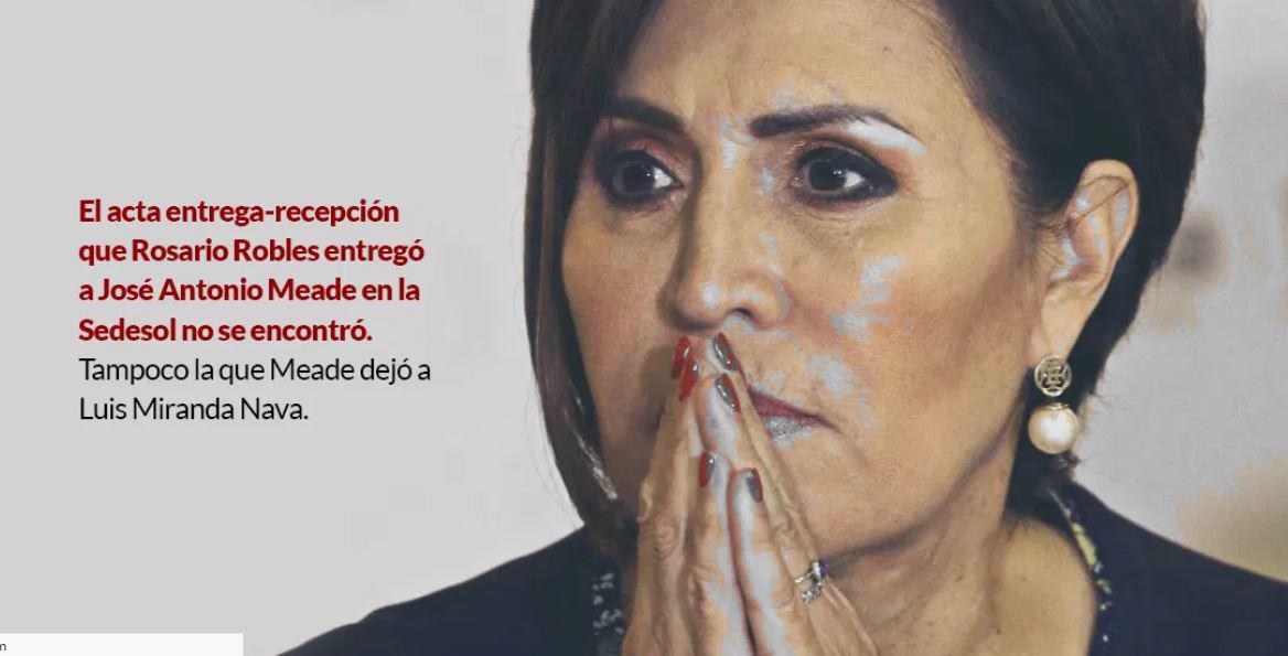 MÉXICO._ Dos meses después de que Rosario Robles Berlanga fuera enviada al Penal de Santa Martha Acatitla, las actas entrega-recepción que ella entregó a su sucesor en la Secretaría de Desarrollo Social (Sedesol), José Antonio Meade, fueron declaradas como extraviadas. Y no solo esas: también las que Meade entregó a su sucesor, Luis Miranda Nava.